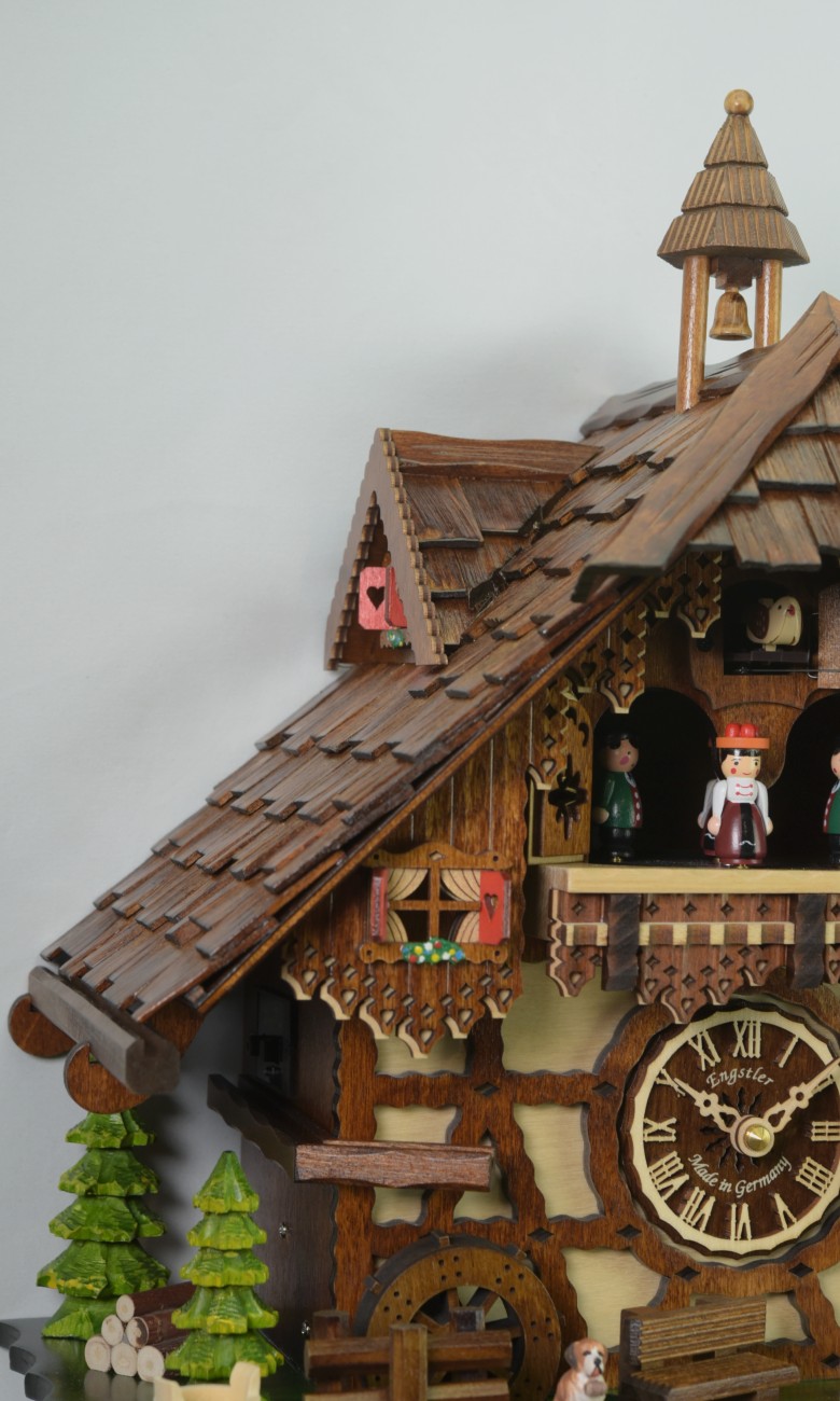 メロディーに合わせて木こりさんがビールを乾杯します。いかにもドイツらしいユニークなからくり時計はリビングルームやダイニングルームの楽しい時間を演出します。楽しい木こりの休憩シリーズ